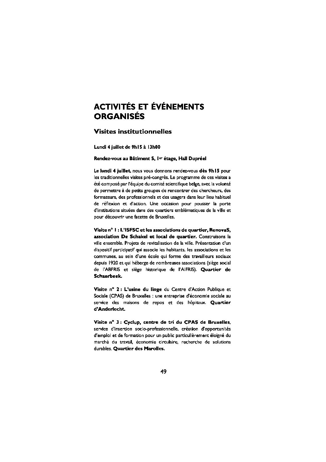 C’est dans la diversité des formes de contributions scientifiques que nous souhaitons rendre possible une participation de tous à la réflexion et aux actions qui seront engagées lors du Congrès de Bruxelles. Pour concrétiser l’ambition de l’AIFRIS de croiser les savoirs et les expériences entre professionnel.les, usagers et usagères, enseignant.e.s ou chercheur.euse.s, le comité scientifique permanent et les associations nationales proposent en sus des communications scientifiques, pédagogiques ou collaboratives (cf. appel à communication), des espaces d’expression critique centrés sur des « outils participatifs co-construits avec les publics », des « carrefours de savoirs » et des « prestations artistiques ». Ces trois formes de contributions supplémentaires feront l’objet d’un appel restreint visant à accueillir et à accompagner chacun.e dans sa participation.